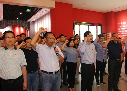 在“中国共产党在沭阳”展览馆,支部全体党员集中接受了一次深刻的党性教育,在党旗下进行了庄严宣誓,重温入党誓词,重忆入党经历。随后大家参观了抗日战争、解放战争、改革开放等多个展厅,感受历史的艰辛和今天巨大成就的来之不易,更加坚定为建设强富美高新沭阳努力奋斗的信念。
